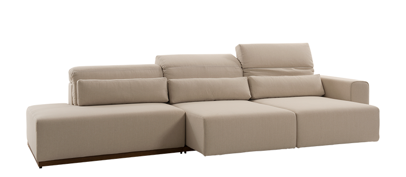 Como o próprio nome já diz, o sofá é um verdadeiro oásis de conforto extremo. Retrátil levemente aéreo, com encosto para apoio de cabeça que possui regulagem de altura, acompanha almofadas lombares que garantem maior comodidade e requadro de madeira.